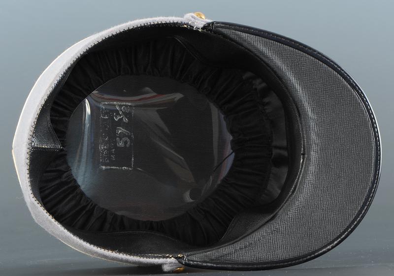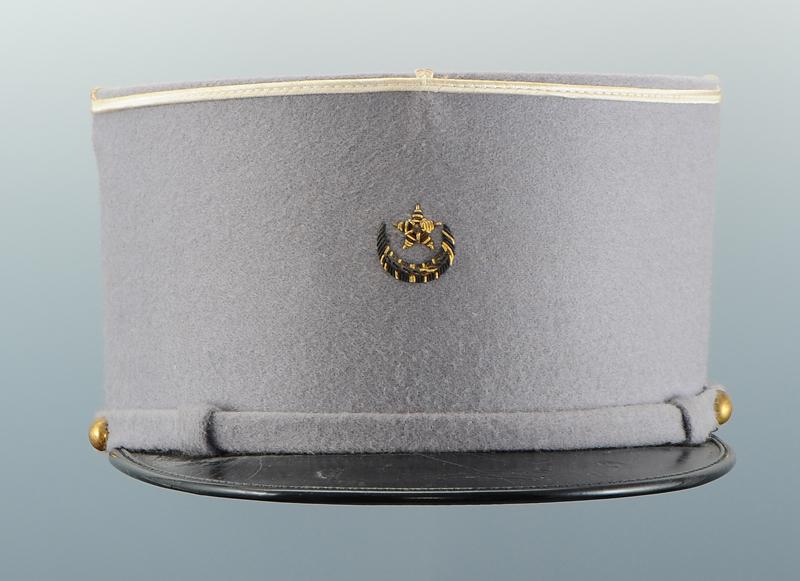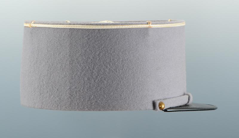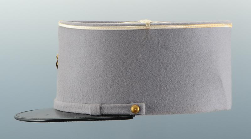 Calot, turban et bandeau en drap bleu-ciel, soutaches de grade en fils de soie synthétique blanc.